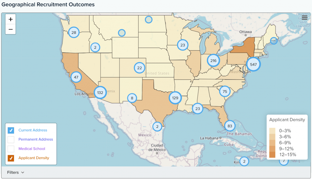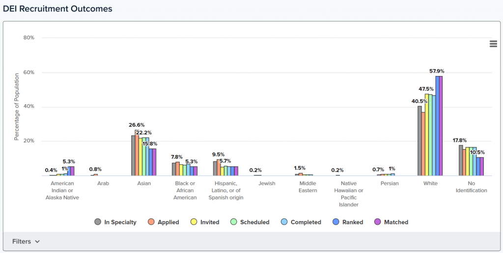 Cerebellum is the first-of-its-kind data & analytics dashboard created to optimize efficient GME recruitment practices and promote diversity, equity and inclusivity. Cerebellum provides comprehensive analysis and comparison data of GME program recruitment performance from multiple perspectives to provide exploratory and deterministic insights that help meet institutional/program recruitment goals. It draws upon data from both Thalamus and Cortex to provide enhanced reporting and outcomes measures for residency and fellowship programs benchmarked against specialty-wide results.