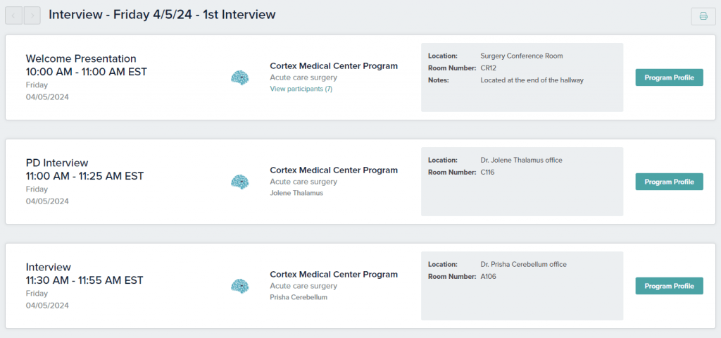 - Applicant and program users can now access all interview itineraries for the entire season!